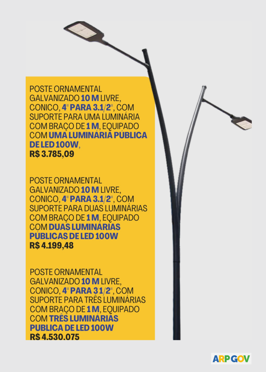 ILUMINAÇÃO PÚBLICA EM LED, LUMINÁRIAS, POSTES E BRAÇOS