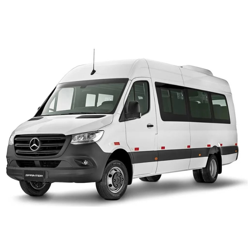 VAN / FURGÃO PARA TRANSPORTE DE 17+1 PASSAGEIROS: O veículo automotor deverá ser novo (zero quilômetro), tipo van, na cor branca, com motor a diesel, adaptado para 18 lugares, sendo 17 para passageiros e 1 para motorista. A cilindrada mínima do motor seja de 2.000 cm³, com potência mínima de 170 cv e torque de 40 Kgf.m. A transmissão seja manual, com pelo menos 6 marchas à frente e 1 marcha à ré, tração traseira e freio a disco nas 4 rodas. O tanque de combustível tenha capacidade mínima de 70 litros e o de Arla 32, 20 litros. O comprimento total seja de no mínimo 6.967 mm e o PBT (Peso Bruto Total) de 4.100 kg. A distância entre eixos seja de no mínimo 4.325 mm. O veículo conte com: airbag, direção hidráulica, vidros elétricos dianteiros com trava, iluminação interna e externa, rádio básico com alto-falante no salão, tapetes de borracha para cabine, protetor de cárter e câmbio, e seja equipado com quatro martelinhos de segurança nas laterais, com capa de proteção, quatro luzes vigia (duas amarelas e duas vermelhas) no teto e demais equipamentos obrigatórios. Os pneus deverão ser 225/75R16C, de acordo com a linha do fabricante, e deverão estar equipados com selante de pneu profissional, que é preventivo e reparador de furos. O selante oferece proteção contra furos de até 12 milímetros para veículos leves e até 20 milímetros para veículos de carga e máquinas pesadas. Ele é composto por fibra Kevlar, aramida, polímeros granulados à base de borracha e polímeros de PVC, garantindo alta performance e blindagem física. O selante não contém químicos à base de colas e adesivos, possui validade indeterminada e não é nocivo ao conjunto roda e pneu, permitindo a reforma do pneu. Ele é altamente solúvel em água, previne e recupera furos, e diminui a temperatura do pneu em até 30°C. FISPQ balizada pela ABNT e termos de garantia do fabricante, o fornecedor deverá apresentar nota de compra do produto aplicado no ato da entrega do veículo. Os bancos dos motoristas e passageiros deverão ser reclináveis e revestidos em courvin de alta qualidade ou tecido, mantendo o padrão das poltronas traseiras, com apoio de cabeça. Todos os bancos precisarão estar equipados com cintos de segurança, em conformidade com as normas da ABNT e do CONTRAN. Os bancos do salão terão de ser fixados integralmente por trilhos de alumínio extrusado, devidamente alinhados. O sistema de fixação dos bancos por trilhos de alumínio extrusado oferece maior segurança, promovendo a distribuição eficiente das forças de impacto em situações de frenagens bruscas ou colisões, garantindo a estabilidade dos bancos, em conformidade com os critérios estabelecidos pela Resolução CONTRAN 939/2022, que regulamenta a ancoragem de bancos em veículos de transporte coletivo. Este sistema deverá proporcionar flexibilidade no layout interno do veículo, permitindo a remoção e reorganização dos bancos conforme a demanda operacional, seja para o transporte de passageiros ou carga. O sistema de fixação deverá ser fabricado com alumínio extrusado 6061, tempera T6, e deverá atender às exigências normativas de segurança, sendo submetido a ensaios de impacto e resistência para assegurar a integridade estrutural e a conformidade com as normas vigentes. O veículo deverá ser dotado de sistema de ar-condicionado com cobertura total em seu interior. O fornecedor deverá apresentar, na proposta comercial, relatório técnico de ensaio de conforto térmico, realizado em nome da empresa transformadora e/ou da empresa licitante, com o objetivo de comprovar que o sistema de climatização, aliado ao isolamento térmico do veículo, atende aos requisitos de desempenho térmico e conforto ambiental, assegurando condições adequadas de temperatura e ventilação no interior da cabine e salão, em conformidade com a NBR 15570 e outras normas vigentes. O revestimento interno do salão, incluindo teto e laterais direita e esquerda, deverá ser confeccionado em ABS (Acrilonitrila Butadieno Estireno) termoformado, com acabamento de alta resistência e durabilidade, atendendo aos critérios de segurança e higiene exigidos para veículos de transporte coletivo. O material deverá apresentar características de fácil limpeza, alta resistência ao impacto e ao desgaste, garantindo longevidade e manutenção simplificada. O material também deverá ser classificado conforme as exigências de segurança contra incêndio, podendo ser não inflamável ou autoextinguível, de acordo com as normas aplicáveis, como a Norma NBR 9441 e em conformidade com a Resolução CONTRAN 498/2014, que estabelece as normas de segurança para os componentes internos do veículo. Todos os vidros do salão deverão estar em conformidade com a portaria INMETRO 34/2021, e o certificado de conformidade deverá ser apresentado na proposta comercial. O piso deverá ser composto por chapa de compensado naval de 12 mm de espessura, revestido com manta vinílica antiderrapante, sem emendas ou frestas, para evitar infiltração de líquidos e garantir a perfeita assepsia do ambiente. O revestimento deverá possuir características antideslizantes, atendendo às normas de segurança vigentes, assegurando estabilidade e conforto para os ocupantes do veículo. Os acabamentos deverão ser realizados com perfis de alumínio ou plástico, garantindo a resistência e acabamento adequado, com vedação eficiente, evitando a entrada de sujeira ou líquidos nas junções. A iluminação interna do veículo será composta por quatro luminárias LED embutidas no duto central do ar-condicionado, projetadas para fornecer iluminação uniforme e eficiente no interior do veículo. O acionamento das luminárias será feito por interruptor instalado no painel do motorista, com a funcionalidade adicional de acendimento automático ao abrir e fechar as portas, garantindo visibilidade adequada durante o embarque e desembarque de pa